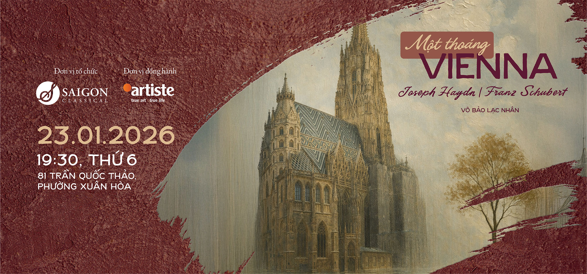 31/12/2025Nếu Vienna là trái tim của âm nhạc cổ điển, thì đêm “Một thoáng Vienna” sẽ khẽ chạm vào hai trong những nhịp đập mạnh mẽ nhất của trái tim ấy. "Một thoáng Vienna" không tham vọng vẽ lại toàn bộ lịch sử, mà là một chuyến dạo chơi tinh tế, một cuộc đối thoại xuyên thời gian giữa hai tượng đài khổng lồ: Joseph Haydn và Franz Schubert. Một người khai mở rạng ngời cho kỷ nguyên Cổ điển - “Trường phái Vienna” và một người khép lại, đồng thời mở ra kỷ nguyên Lãng mạn huy hoàng.